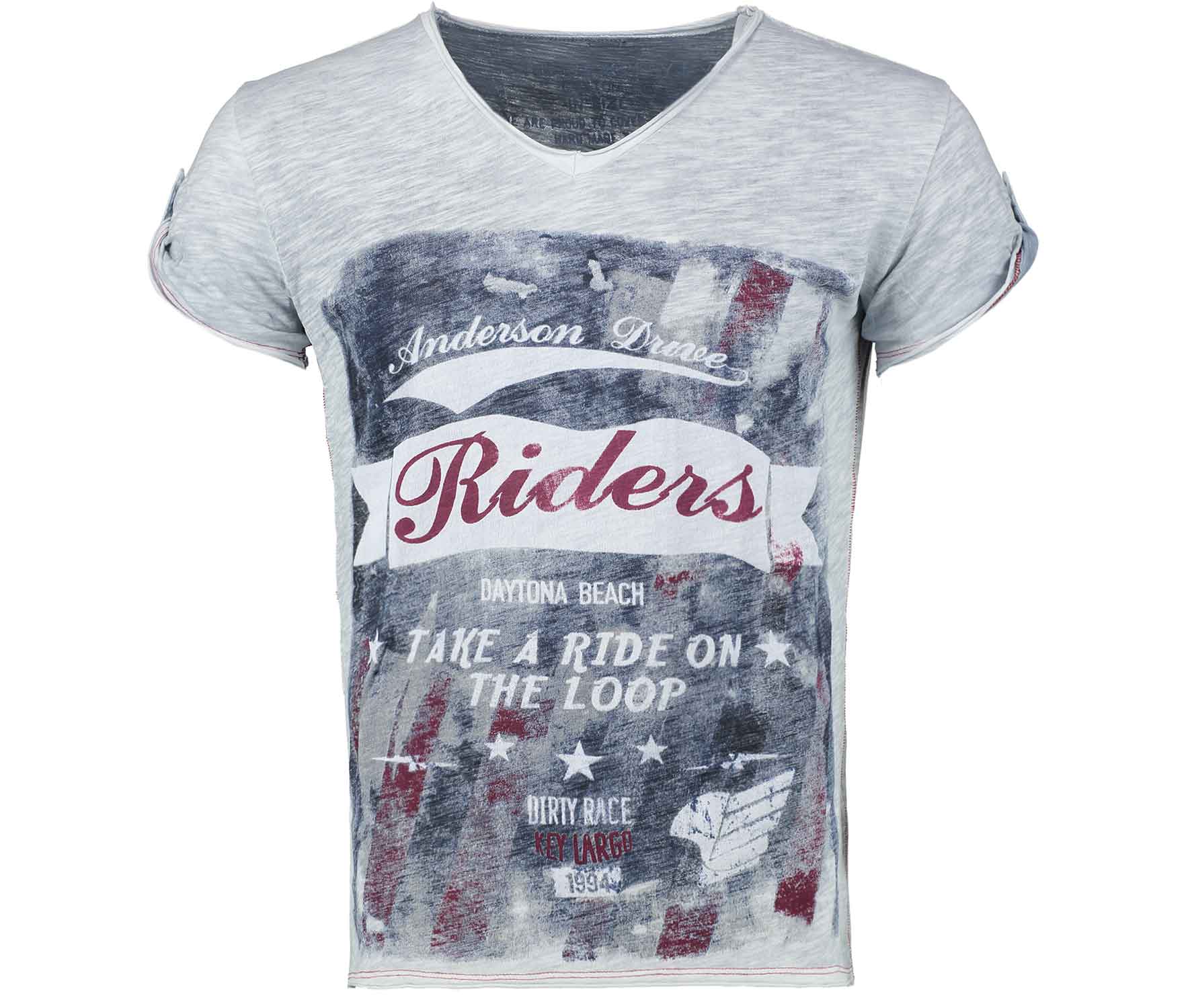 Key Largo Herren T Shirt Squaw Round Print Motiv Vintage Look Tiefer Rundhals Ausschnitt Taillierte Korperbetonte Passform Silver M Amazon De Bekleidung